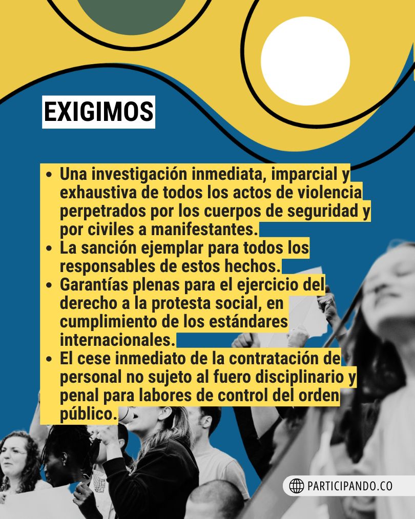 La ciudadanía tiene el derecho legítimo a alzar su voz. Nos solidarizamos con las víctimas de la violencia estatal y privada.